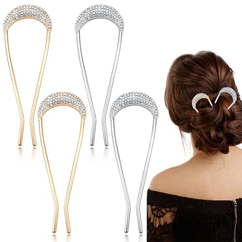 4PCS U Shaped Metal Hair Fork Clips,Vintage French Rhinestone Elegant Hair Prong Styling Pins for Girls, Hair Styling Accessories for Bridal Braided Curly hair, Wedding Daily