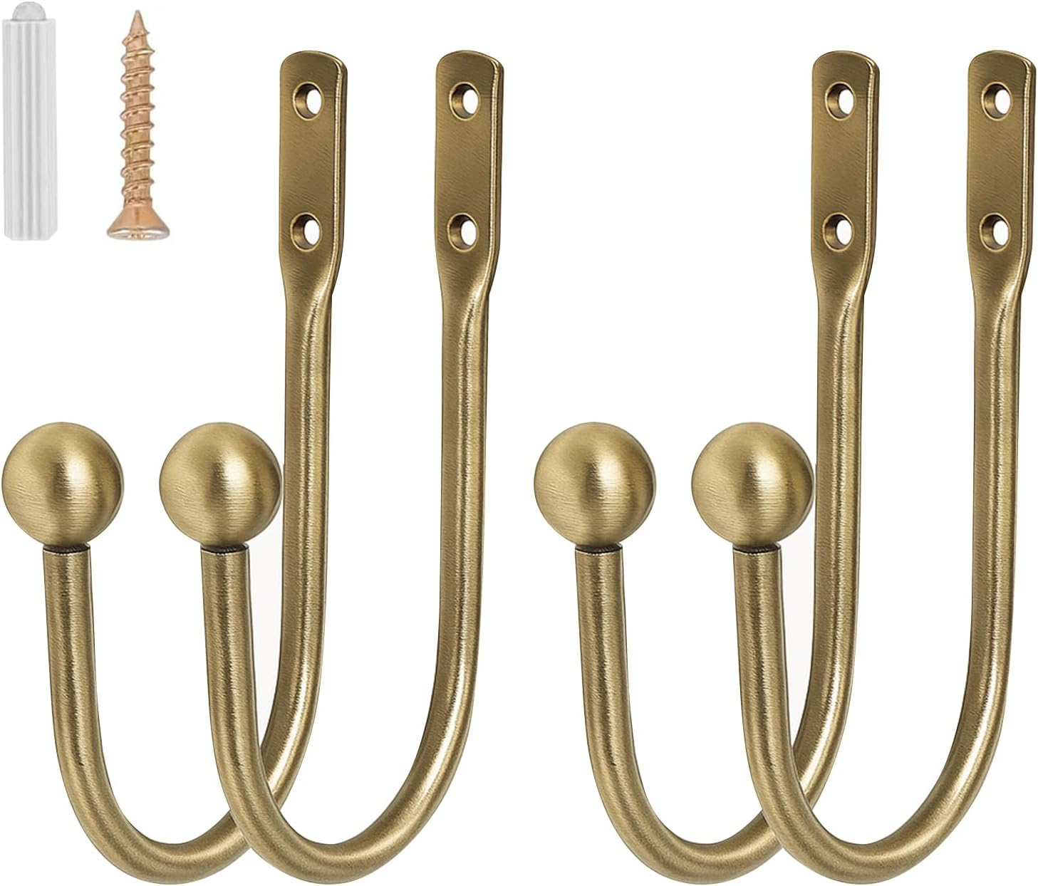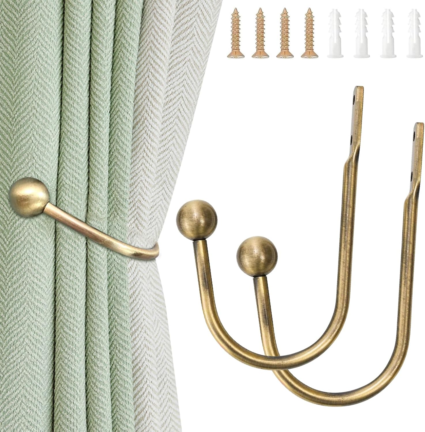 Curtain Holdbacks 2pcs, Brass Curtain Hold Backs Metal Tie Backs for Curtains U-Shaped Hook Wall Mouted Decorative Accessories for Bedroom