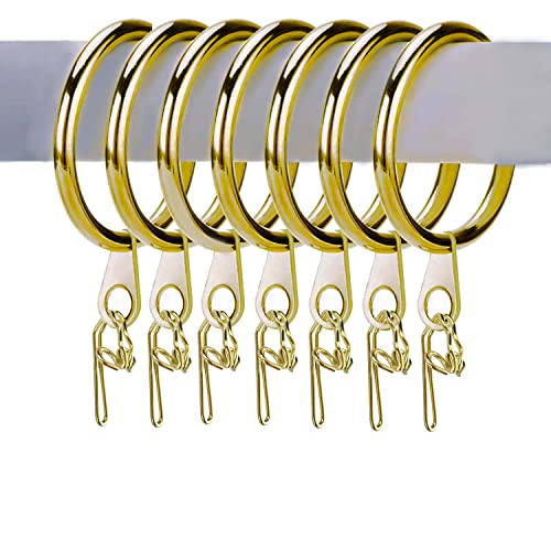 WUBAYI 50 Set Metal Brass Curtain Rings and Hooks, 30mm Internal Diameter, for Curtains and Rods Accessories Drapery Curtain Hanging Rings and Metal Hook(Gold