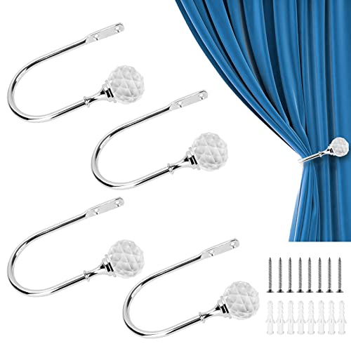 Shoze 4Pack Crystal Curtain Holdback Hook Metal Crystal Ball U-Form Wall Mounted Curtain Tie Backs Hooks Decorative Drapery Holdbacks for Window Curtains Shower Curtains Towels With Screws