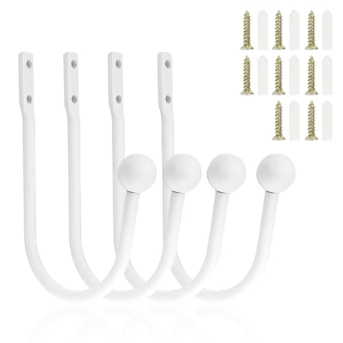 Curtain Holdbacks, 4 Pack White Metal Curtain Tie Backs Hooks Elegant Curtain Tiebacks Wall Mounted Curtains Holder U-Shaped Hook for Drapes or Hanging Items with Screws