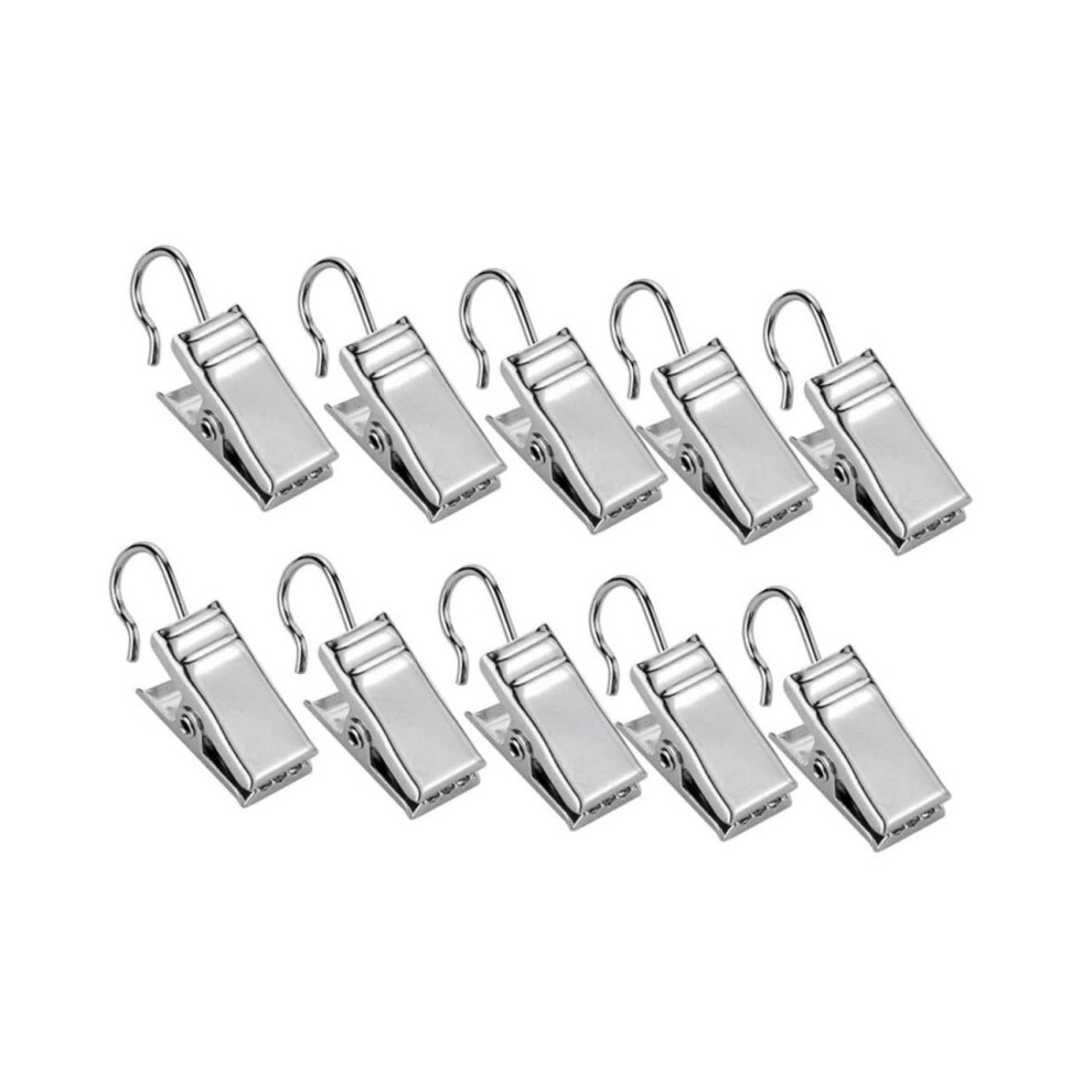 Pack of 30 Small Silver Metal Curtain Hook Clips for Shower Curtains, Party Lights, Photos, and Craft Display