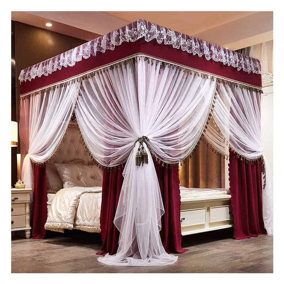 Bed Canopy 4 Corner Posts, Canopy Metal Bracket Hook Set, Bunk Bed Curtains For Double Bed Style1 180x220x200cm