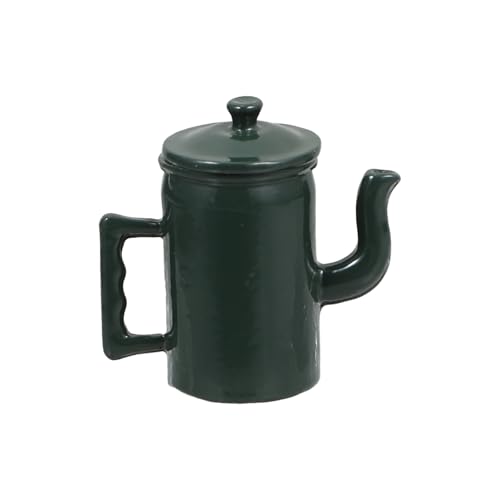Toyvian 12 Scale Dollhouse Coffee Pot Model with Lid, Metal Mini Water Kettle Prop for Doll House Kitchen Scene, Dark Green Dollhouse Accessory for Decoration