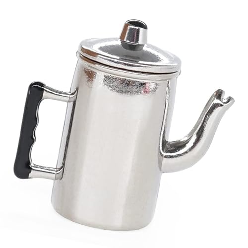 AOOOWER Antique Metal Coffee Kettle 1/12 Miniature Dollhouses Accessory Detailed Collectible Kitchen Decors Miniature Metal Kettle Dollhouses