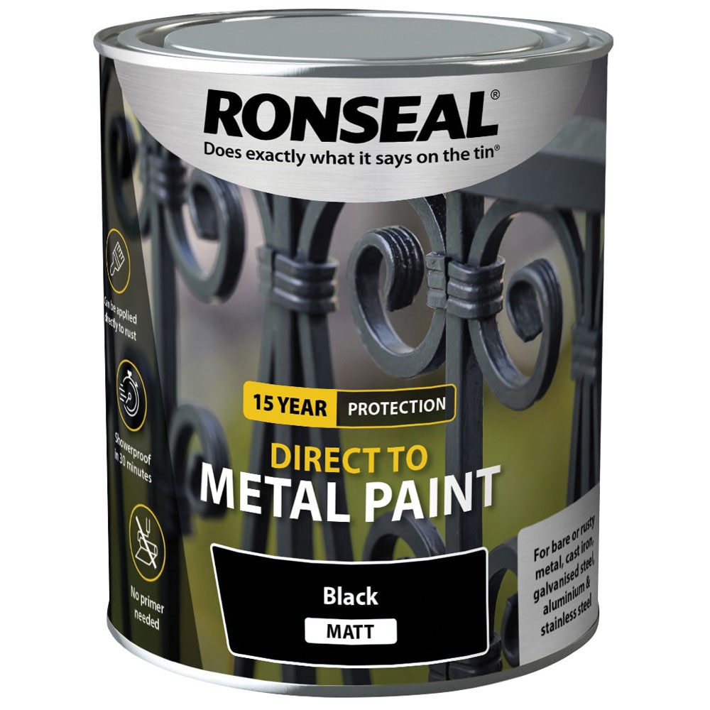 Ronseal Direct to Metal Paint Black Matt 250ml RSLDTMBM250