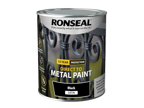 Ronseal Direct to Metal Paint Black Satin 750ml RSLDTMBS750