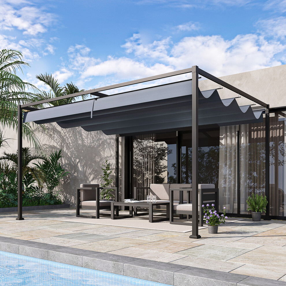 Outsunny 4 x 3(m) Metal Outdoor Pergola with Retractable Roof, Outdoor