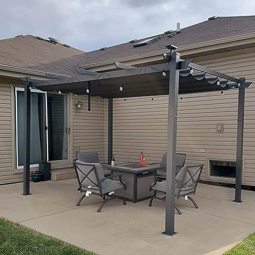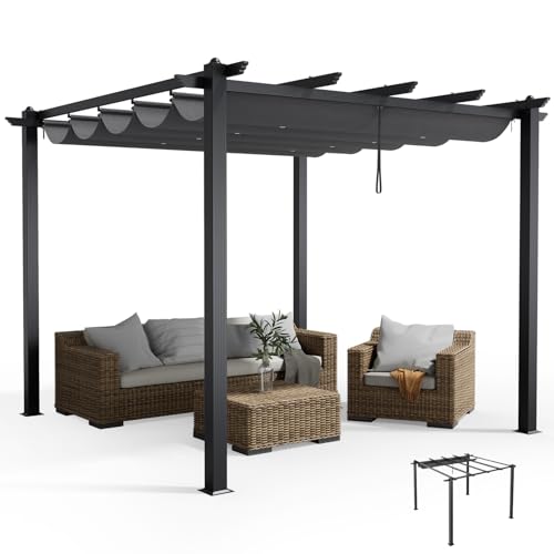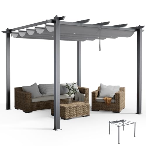 VOUNOT 3x3m Metal Pergola with Retractable Roof, Garden Gazebo for Outdoor, Grey