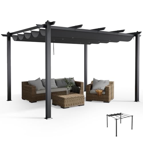 The Fellie 3M x 4M Aluminium Pergola with Retractable Roof, Outdoor Garden Gazebos Waterproof, Metal Pergola for Garden, Party, Patio, Dark Grey
