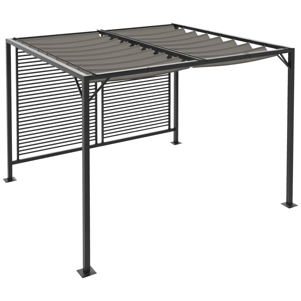 Outsunny 3 x 3(m) Metal Pergola with Retractable Roof and Sidewalls, Grey