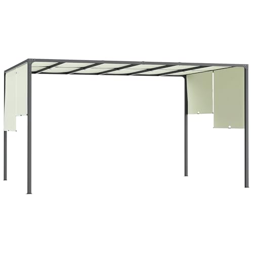 Outsunny 3 x 3(m) Metal Pergola with Retractable Roof and Sidewalls, Beige