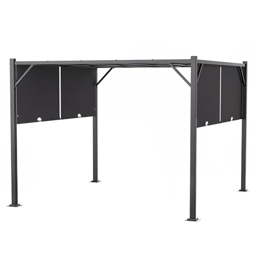 The Fellie 3M x 3M Metal Pergola with Sliding Roof, Outdoor Garden Gazebos Waterproof, Metal Pergola for Garden, Party, Patio, 300x300x220 cm, Dark Grey,