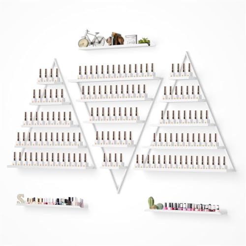 10 Pcs Nail Polish Rack, Holds 350 Bottles Of Nail Polish, Heavy Duty Metal Nail Polish Bottle Holder, 5 Tiers, Triangular Essential Oil Display Organizers, for Home Spa Nail Salon Shop(White)