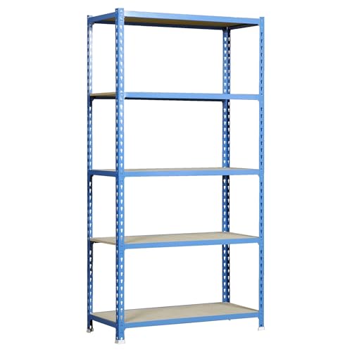 Simon Rack Garage Shelving Unit 2000x1000x400 mm, 5 Tier Metal Rack with 16 mm MDF Shelves, 150 kg per Shelf, Blue/Wood – Maderclick