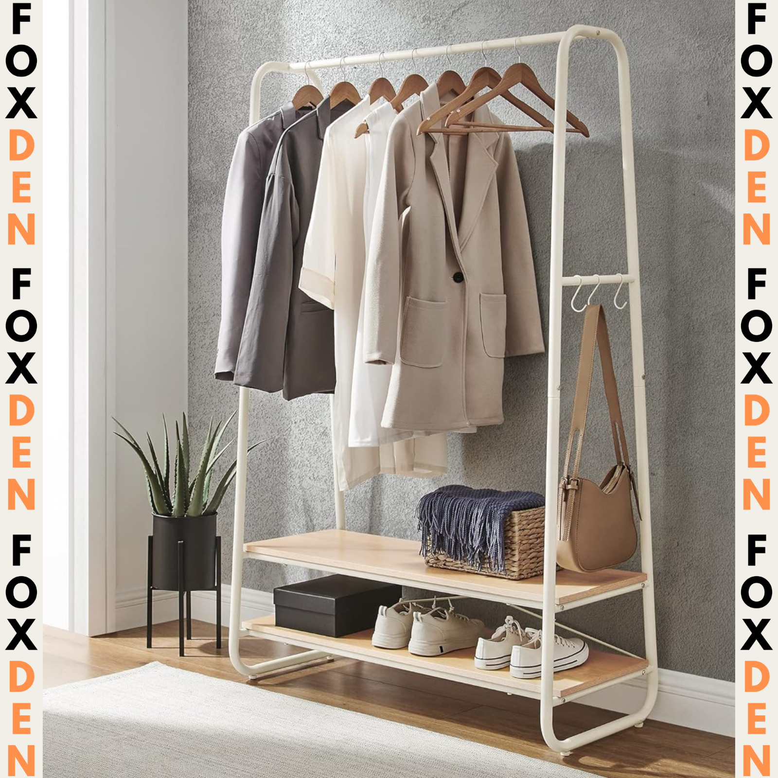 Metal Coat Rack with Shoe Storge, Clothes Hanging Stand