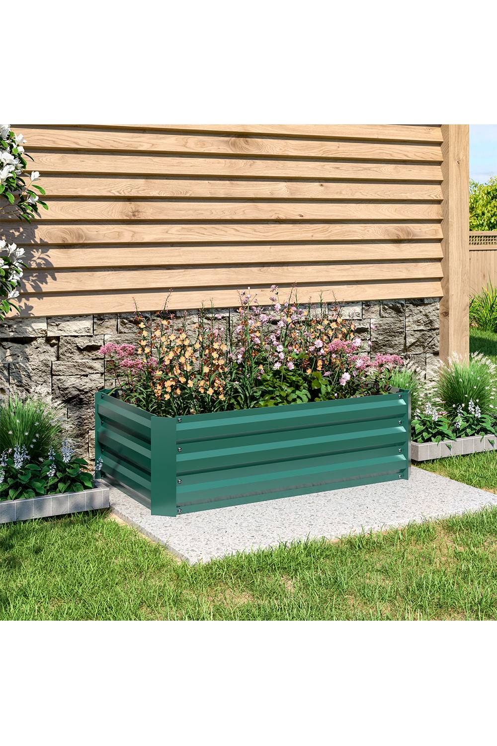 Living and Home Outdoor Galvanized Metal Flower Bed Raised Garden Bed in Green