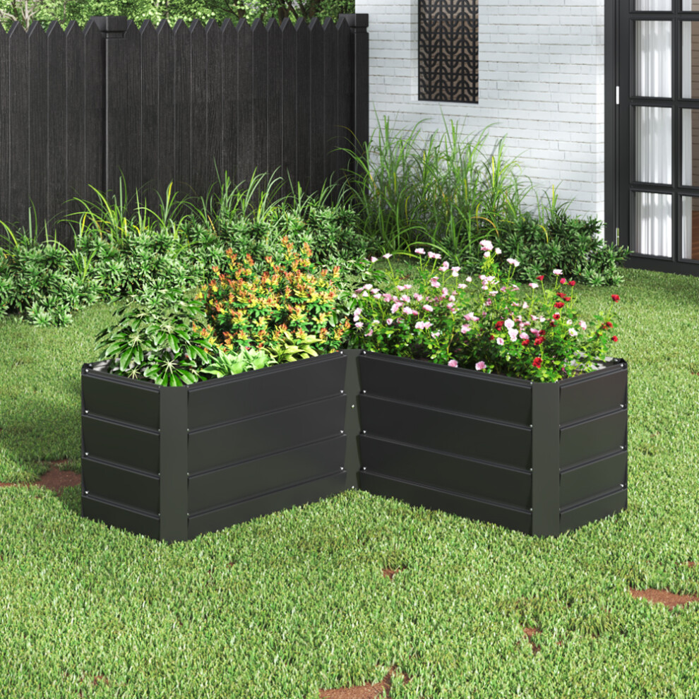 Garden Sanctuary L-shaped Metal Raised Garden Bed