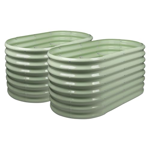 Land Guard Galvanized Oval Large Metal Raised Garden Bed Kit, Planter Boxes for Vegetables 4 x 2 x 1ft (Green)