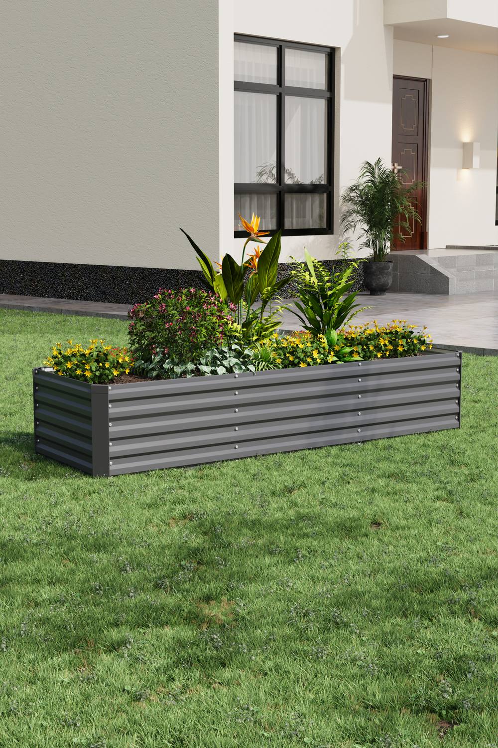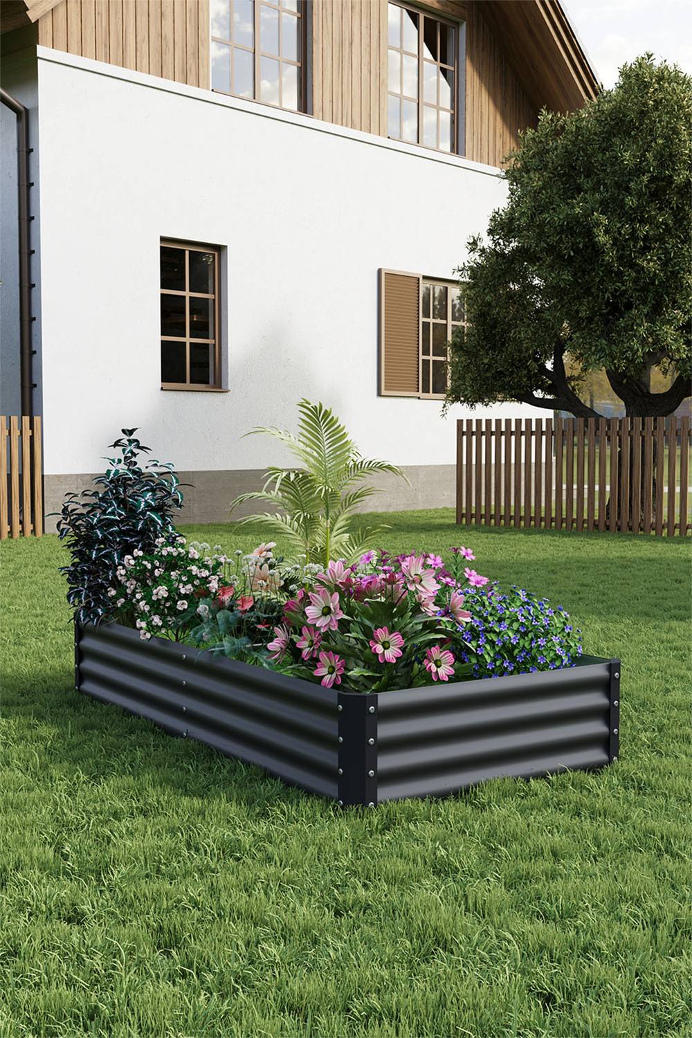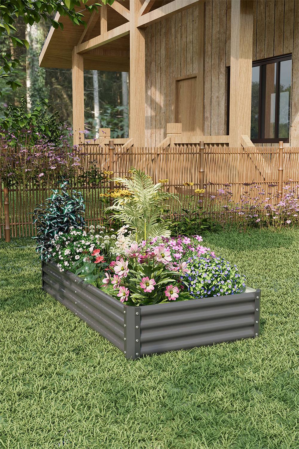 Living and Home Outdoor Rectangular Metal Raised Garden Bed in Charcoal