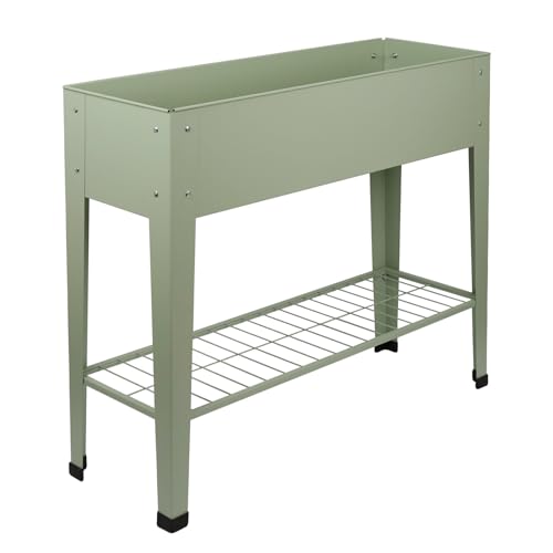 Harbour Housewares Elevated Raised Garden Bed with Legs & Storage Shelf - Green - 1x Metal Raised Bed Galvanised Steel Planter Box for Growing Outdoor Plants, Vegetables, Flowers and Herbs