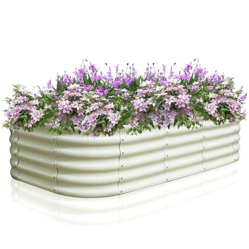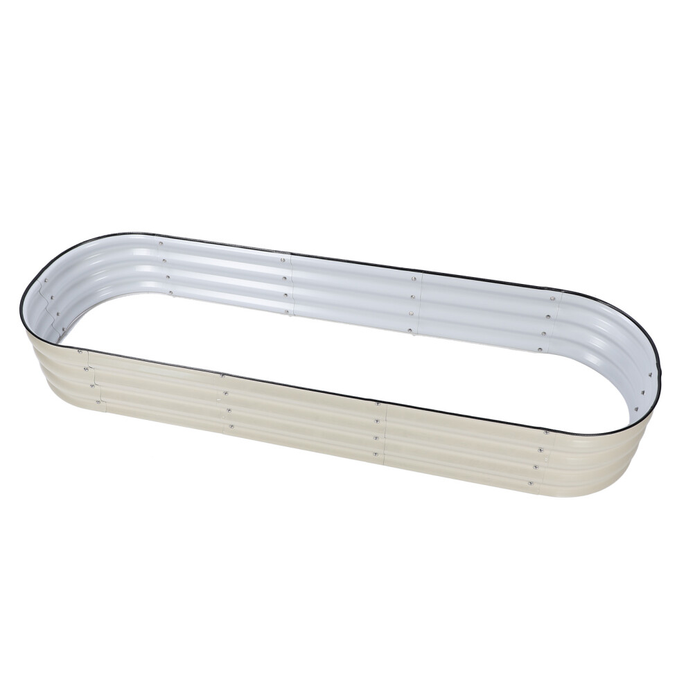 Colwelt Raised Garden Beds Outdoor 240x60x45cm, Raised Beds Steel Planter Box for Easy Growing Vegetables, Flowers, Herbs, Bottomless Metal Raised Bed Grow Bed Box with Safety Edging (Oval, Beige)