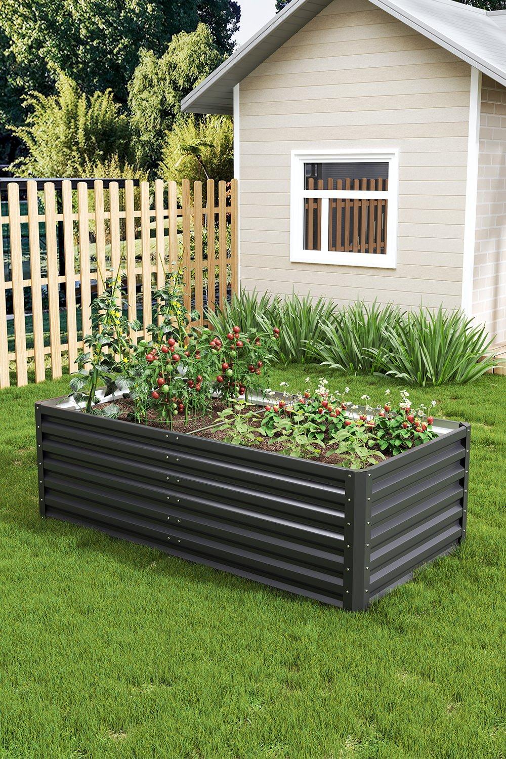 Outsunny Raised Metal Garden Bed w/Edging Dark Grey, none