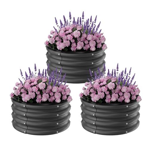 GarveeLife Metal Raised Bed 60 x 28 cm, Pack of 3, Round Raised Bed for Outdoor Use, Metal Garden Bed for Vegetables, Galvanised Steel Raised Beds for Gardening, Above Ground Garden Box for Flowers