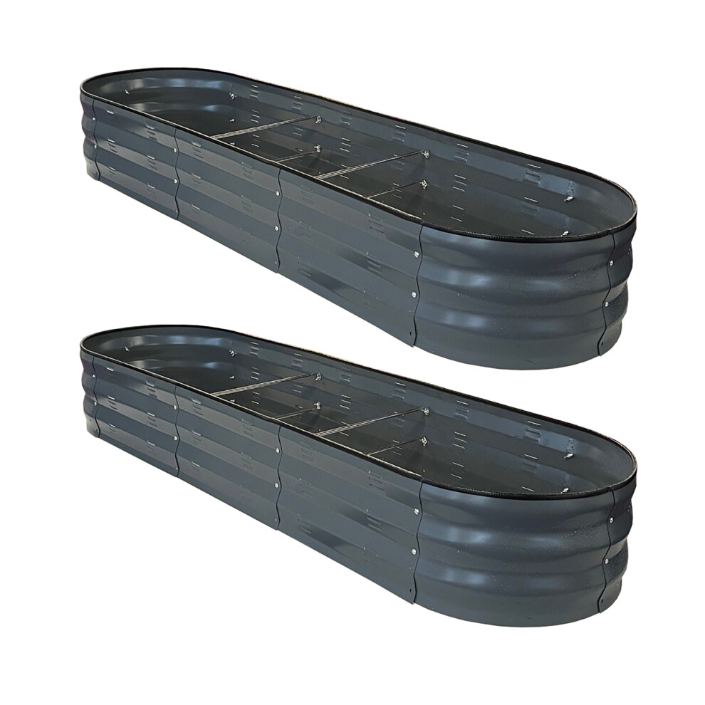Set of 2 x Large Metal Oval Raised Vegetable Bed in Dark Grey (170cm)