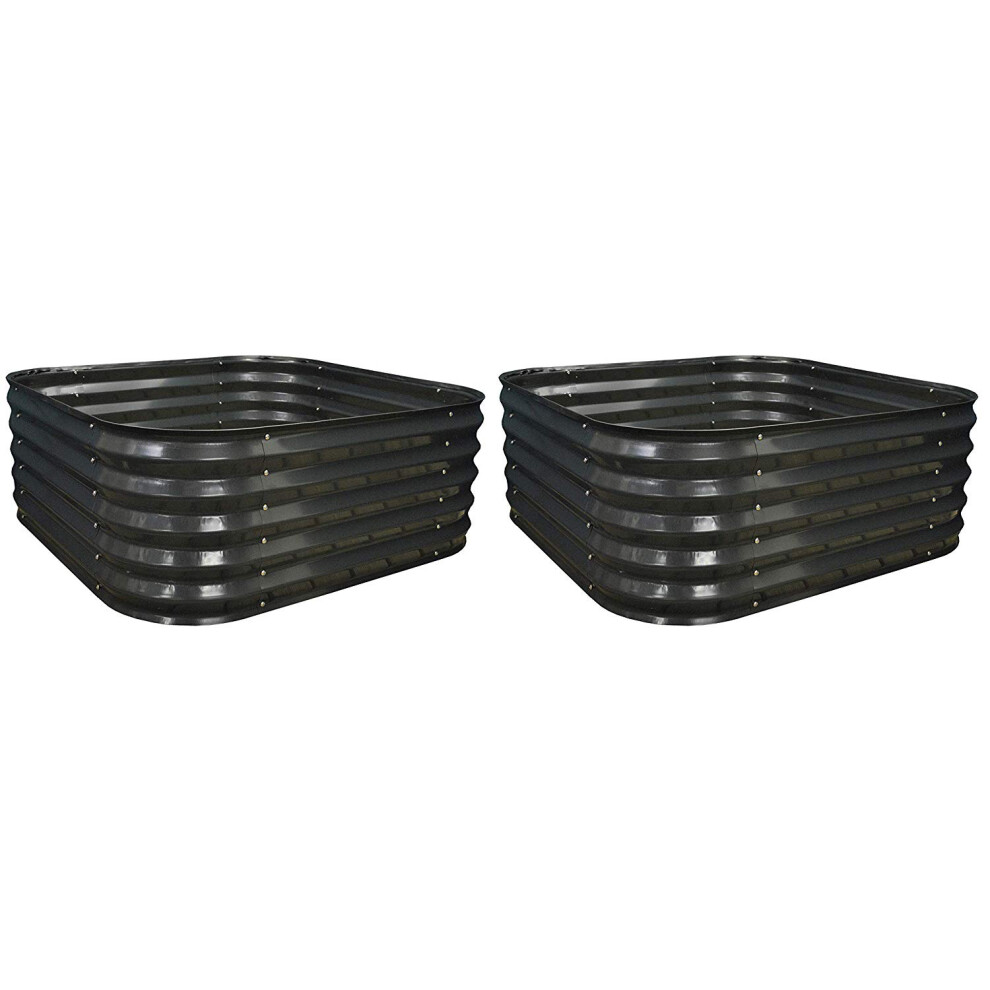 Set of 2 x Large Metal Raised Vegetable Bed in Dark Grey (120cm)