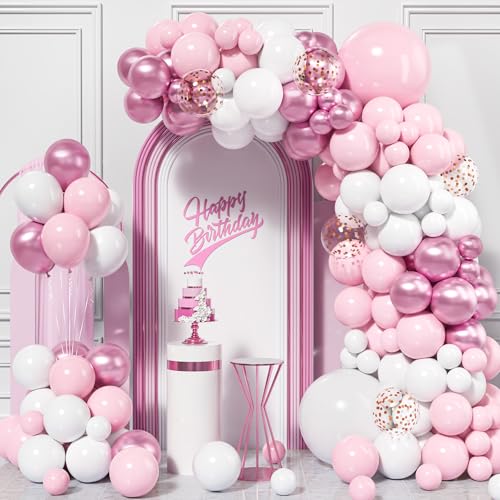 Pink Balloons Arch Kit, 115Pcs Pastel Pink Macaron Baby Pink White Metal Pink Rose Gold Confetti Balloon Garland Girl Women Gender Reveal Baby Shower Anniversary Wedding Birthday Supply