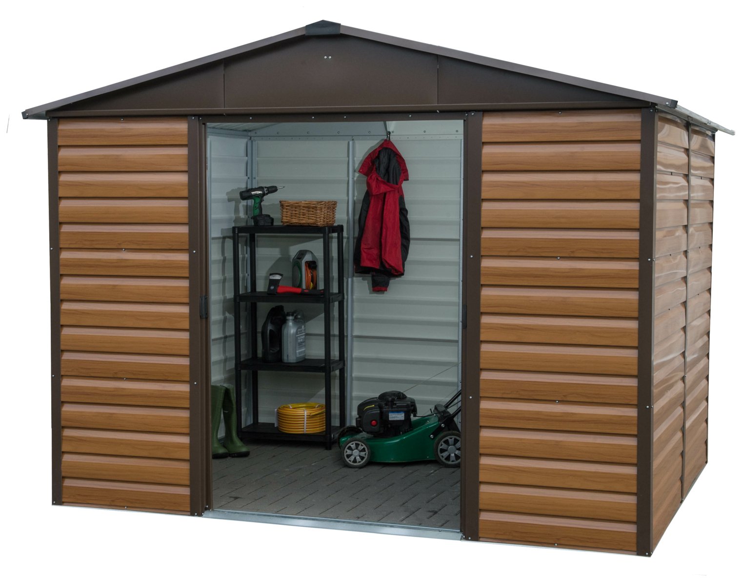 Yardmaster Woodgrain Shiplap Metal Windowless Shed - 10x8ft