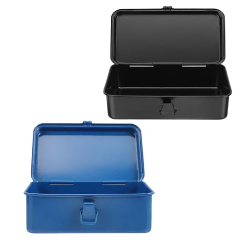 Yardenfun 2pcs Heavy Duty Metal Tool Storage Boxes Set Portable Mini Iron Tool Cases in Blue and Black for Car Trunk and Home Use and Electrician Essential Containers
