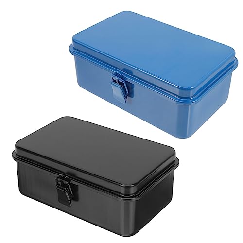 DIYEAH 2pcs Heavy Duty Metal Tool Storage Boxes Car Trunk Organizer Portable Tools Container for Mechanics and Home Use