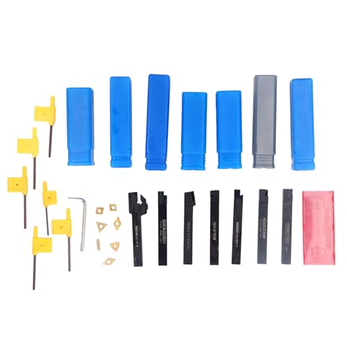 12mm Lathe Boring Bar Set, 7PCS Indexable Turning Tool Holders with Carbide Inserts and Wrenches, CNC Lathe Cutting Tool Kit for Metal Machining with Storage Boxes