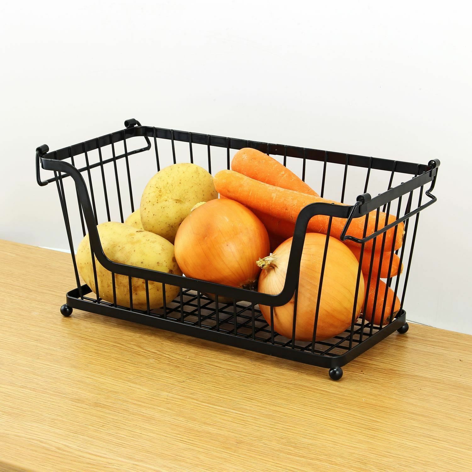 Stackable Metal Wire Storage Basket Boxes Food Vegetable Kitchen Shelves Black