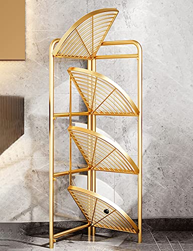 HXFENA 4 Tier Folding Storage Rack, Large Capacity Floor-Standing Metal Storage Shelves, for Kitchen Bathroom Office Laundry Balcony/Golden / 120x51x35cm