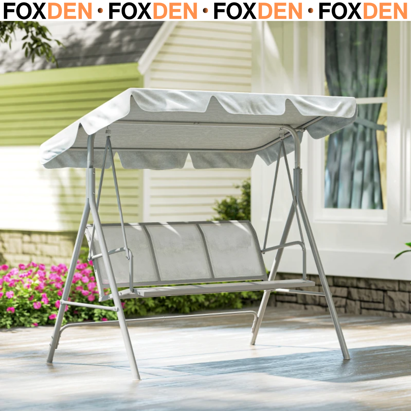 Outdoor Metal Hammock Swing Chair 3-Seater Patio Bench Garden