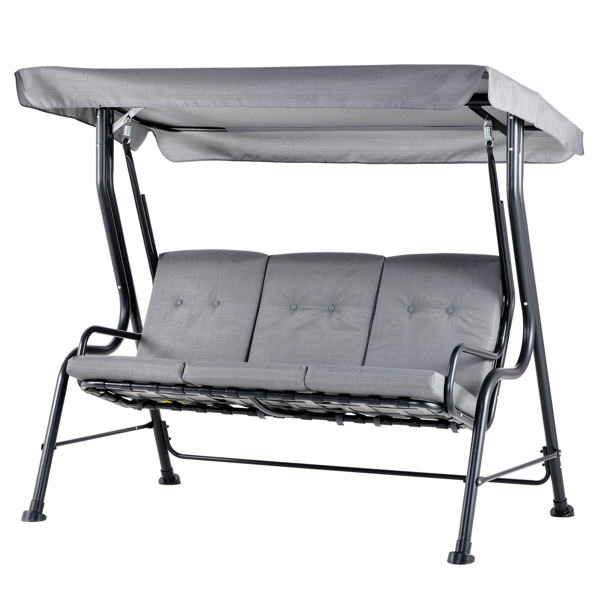 Metal Garden Swing Chair Hammock 3 Seater Patio Swing Bench with Sun Canopy Grey