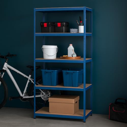 KCT 5 Tier Blue Garage Metal Shelving Unit Rack -Sturdy Utility Racking Storage Shelf Solutions for Home, Garden, Shed or Workshop