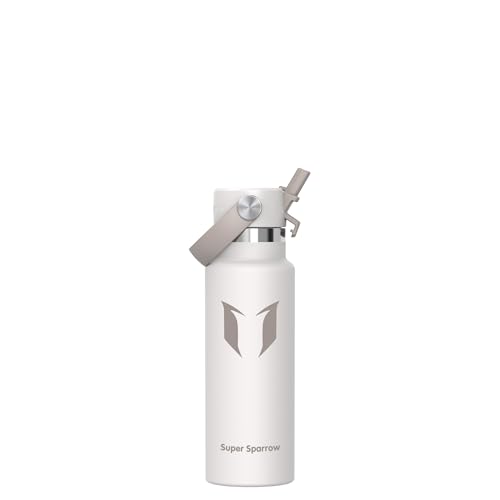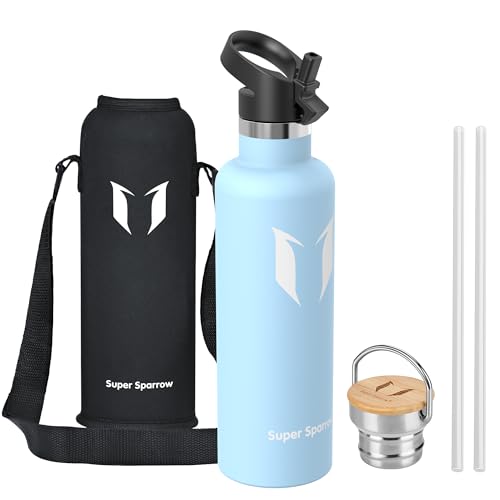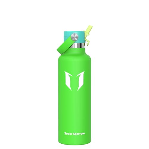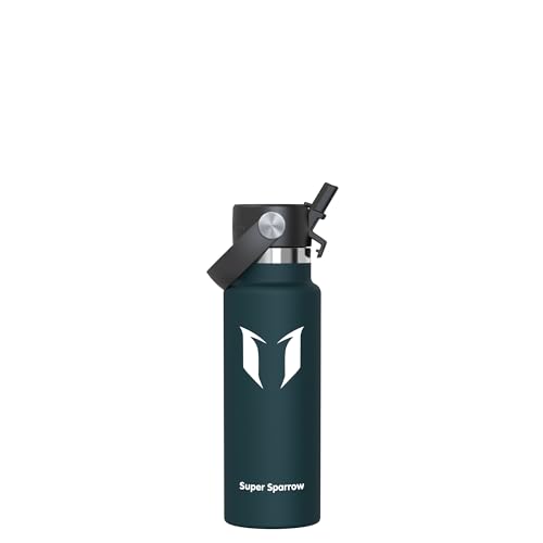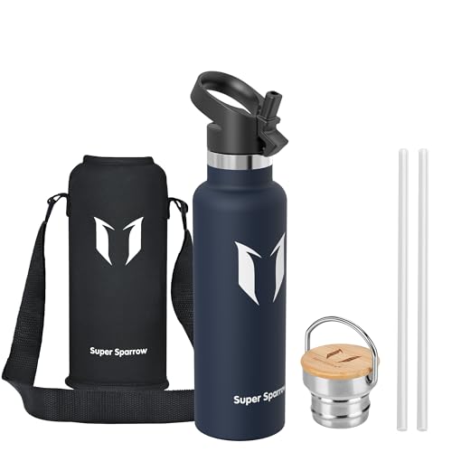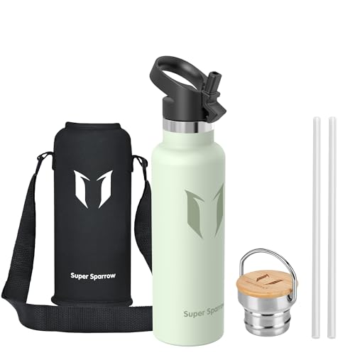 Super Sparrow Water Bottle Stainless Steel - 620ml - Insulated Metal Water Bottles - Standard Mouth Flask - BPA Free - Straw Bottle for Work, Gym, Sports - 2 Lids