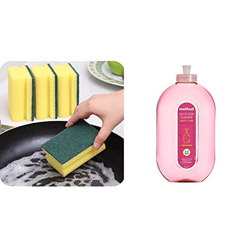 HOMESmith 8 Packs Heavy Duty Scrub Sponge, Dual-Sided Dishwashing & Cleaning Sponge for Kitchen, Bathroom and Home Cleaning (Pack of 9) & Method Floor Cleaner, Wild Rhubarb, 739 ml