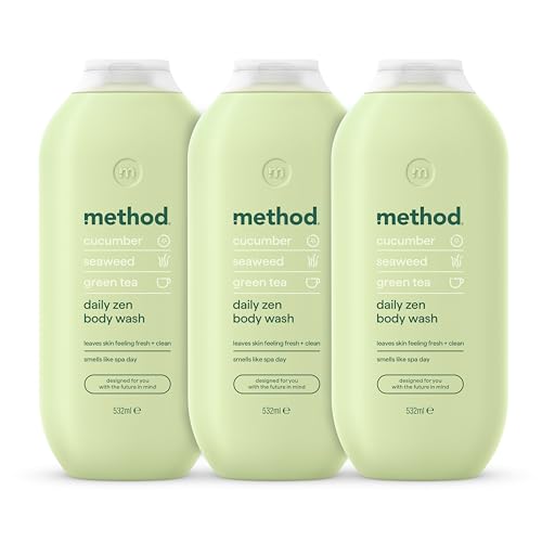 Method Body Wash, Daily Zen, Shower Gel, Vibrant Cucumber, Seaweed and Green Tea Scent, Pack of 3, 3 X 532ml