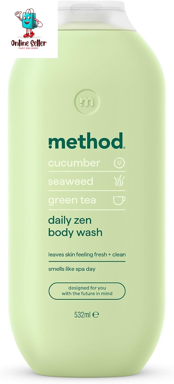Method Body Wash, Daily Zen, Shower Gel, Vibrant Cucumber, Seaweed and Green Tea Scent, Pack of 1, 532ml