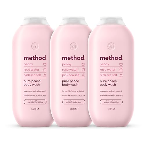Method Body Wash, Pure Peace, Shower Gel, Peony, Rose Water And Pink Sea Salt Scent, Pack of 3, 3 X 532ml