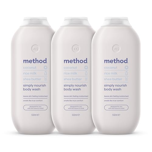 Method Body Wash, Simply Nourish, Shower Gel, Coconut, Rice Milk And Shea Butter Scent, Pack of 3, 3 X 532ml
