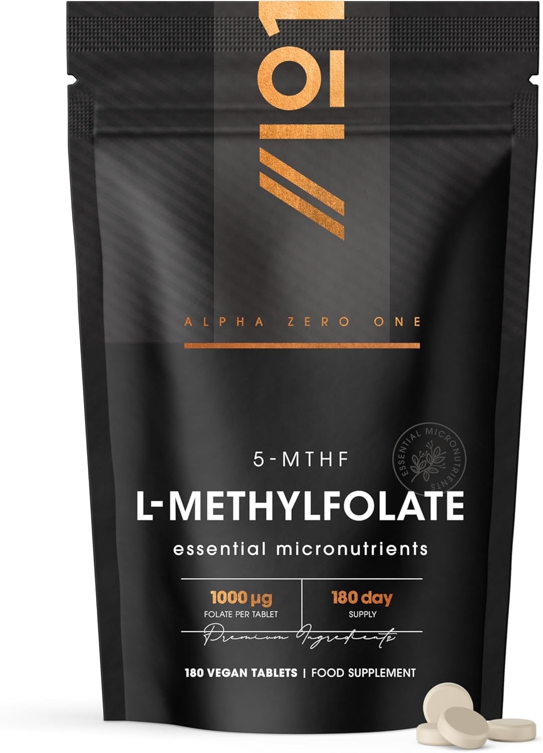 Folate L-Methylfolate 1000μg – 180 Vegan Tablets – L-5-MTHF Active Form of Fo...