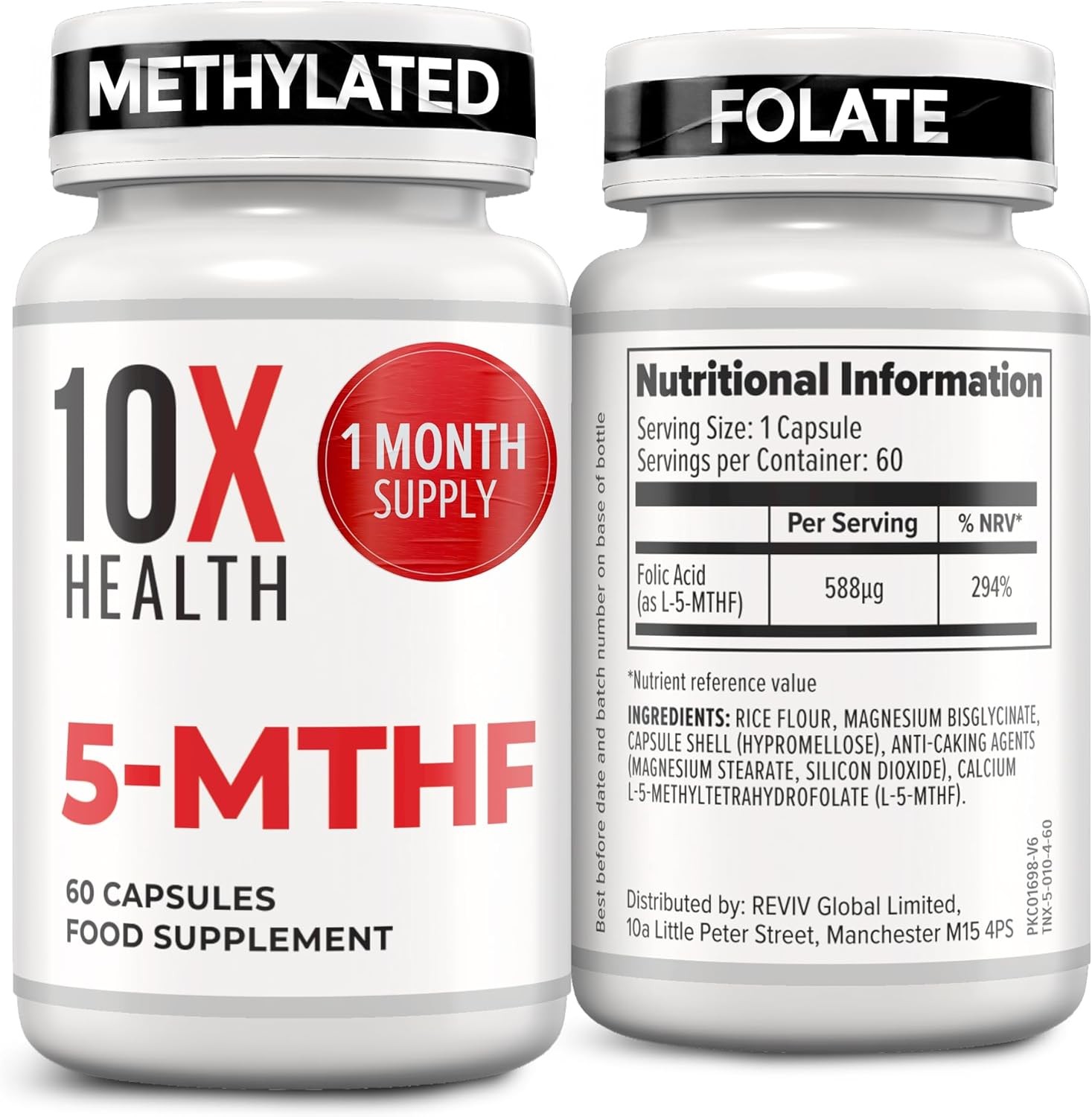 10X Health 5-MTHF Methylfolate - 60 Capsules Methylated Folic Acid with Magnesi