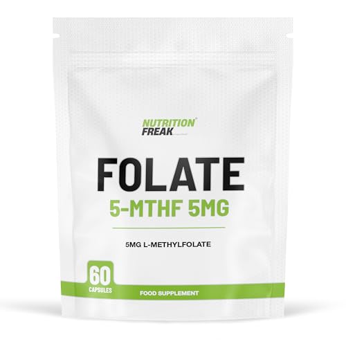 Nutrition Freak Folate 5mg (L-Methylfolate) 60 Capsules, 5-MTHF Active Form of Folic Acid/Vitamin B9