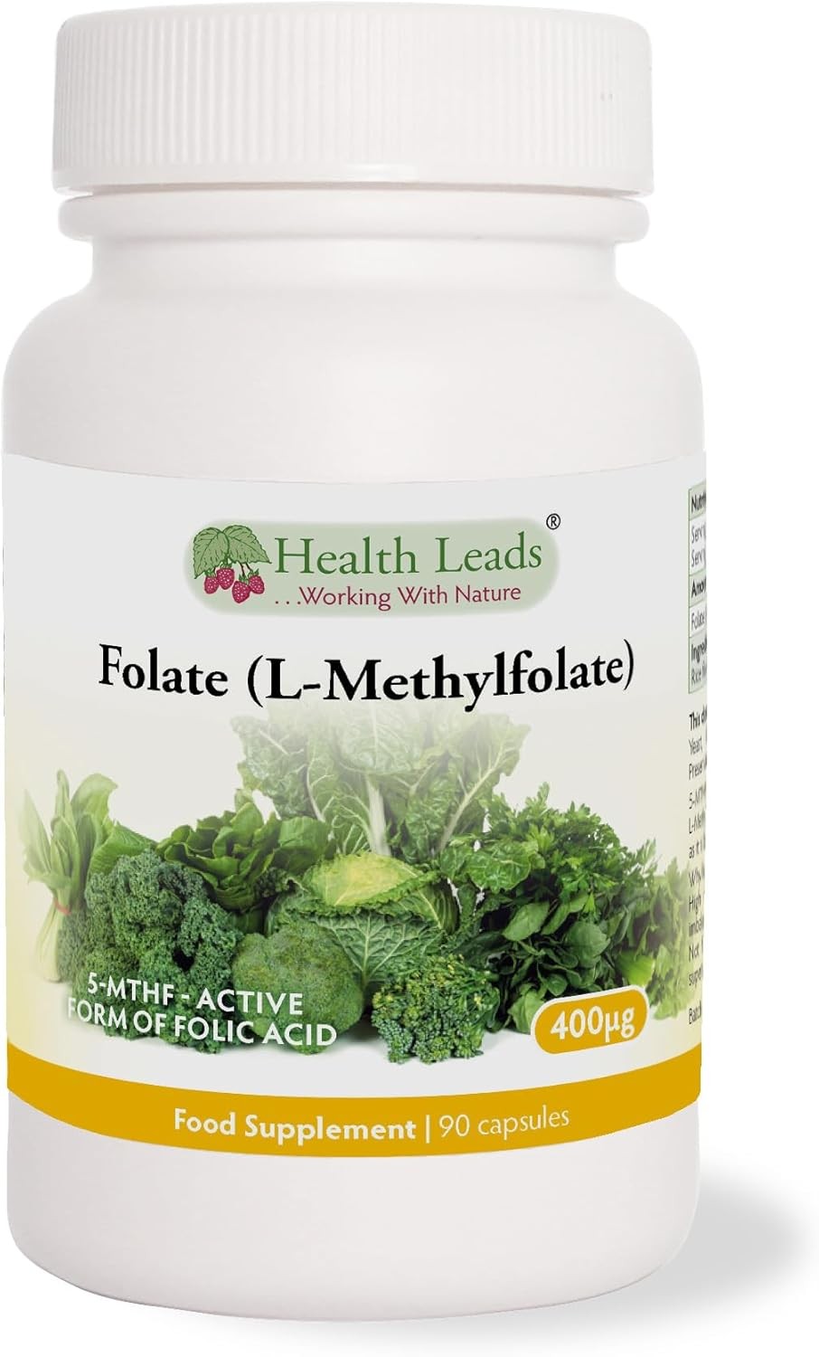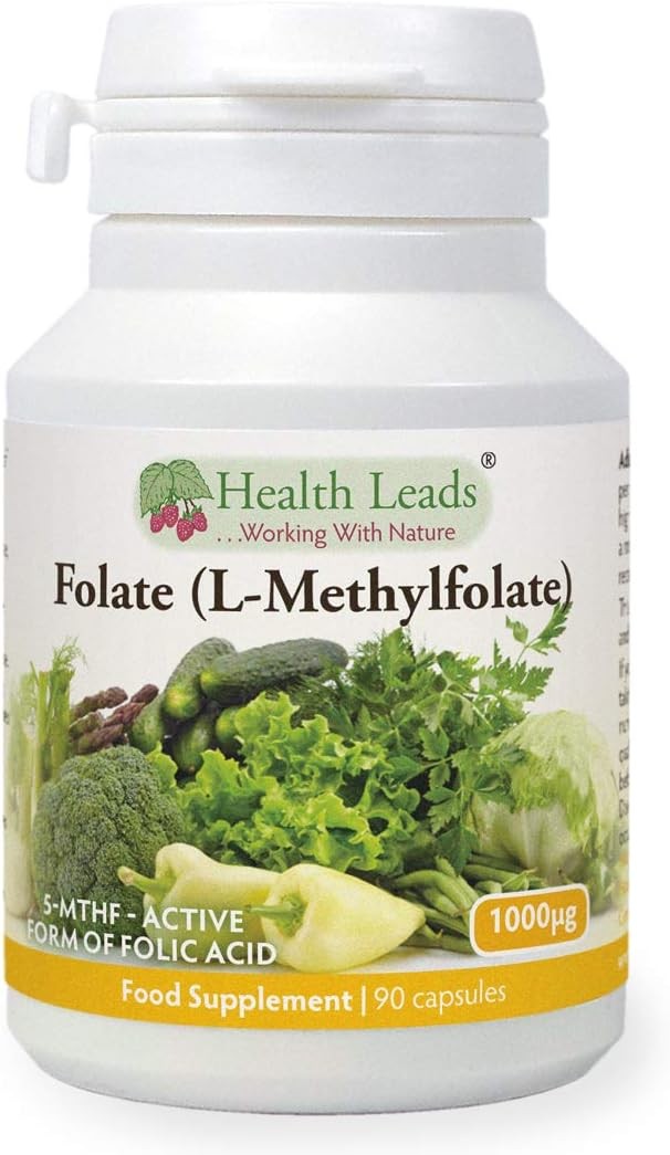 Health Leads Folate (L-Methylfolate) 1000mcg, 90 Capsules - Natural 5-MTHF Vitamin B9 for Better Absorption